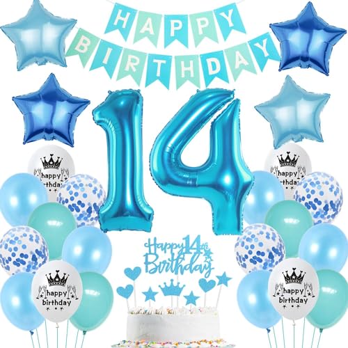 Ohaoduo ballons 14 ans anniversaire garcon fille bleu décoration gâteau anniversaire 14 ans garcon décoration fête 14 ans anniversaire garcon bleu décoration anniversaire 14 ans garcon ballon