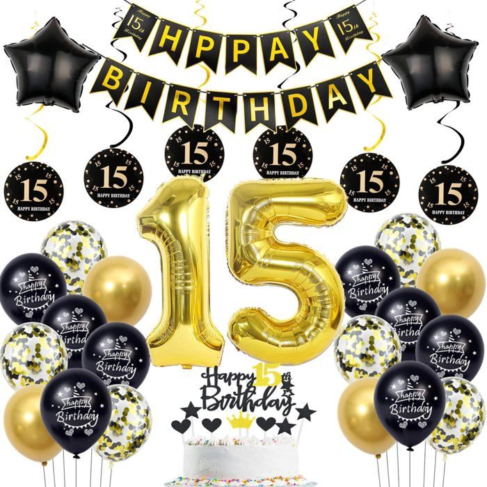 Décoration 15 ans anniversaire garcon fillenoir or ballon 15 ans anniversaire garconOr Décoration gâteau anniversaire 15 ans