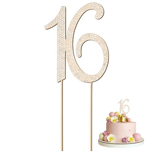 ktxaby Décoration de gâteau 16e Anniversaire avec Chiffres en métal doré et Strass pour 16 Ans fête d'anniversaire,1 pièce Hauteur 22cm Accessoires de Gâteau pour célébration d'anniversaire