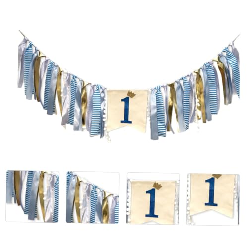 Bannière de chaise haute 1 pièce Nœuds de chaise à pompons Bannière de chaise Ruban tulle Housse de chaise Guirlande de chaise haute Ruban Bannière Arc Décoration de fête pour 1er anniversaire