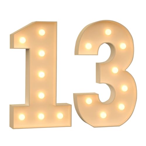 Grand panneau lumineux de fête à DEL en mousse prédécoupée, cadre en mosaïque, cadre ballon, décoration d'anniversaire, numéro 13, 70 cm