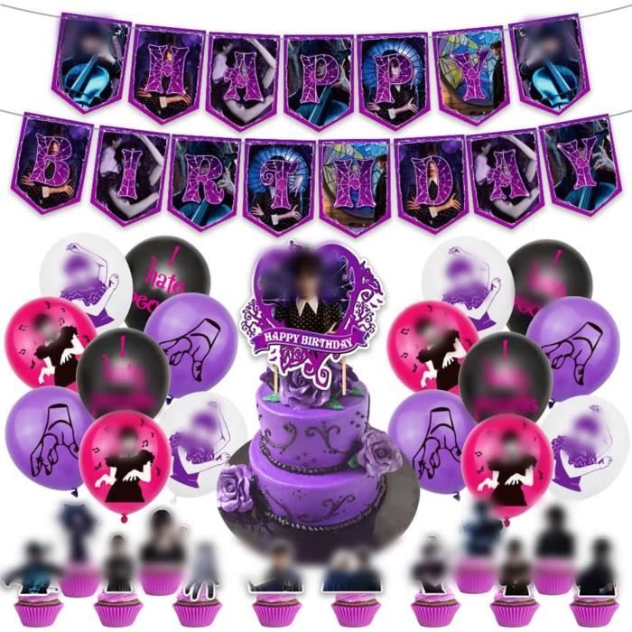 42Pcs Mercredi Ballon Décoration Anniversaire Mercredi Addams Cake Topper Decoration Anniversaire Addams Family Fournitures [t4499]