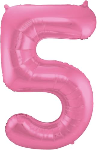Folat 65905 Ballon Aluminium Numéro Chiffre 5 métallique Rose 86 cm - héliumballon pour Date d'anniversaire, Anniversaire, Décoration