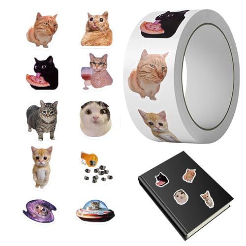 Autocollants Chat - 500 Feuilles Par Rouleau Autocollants Décoratifs | Décoration Salle de Classe et Journaling - Pour École Fête Bureau Scrapbook Carnet Ordinateur Portable Bouteille d'Eau Cahier
