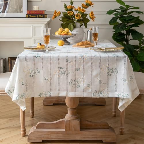 Pahajim Nappe Rectangulaire Anti Tache Lin Coton Impermeable Nappe de Table Moderne Simple Style pour Table Basse,Exterieur,Jardin,Cuisine Decoration(Blanche,135x260cm)