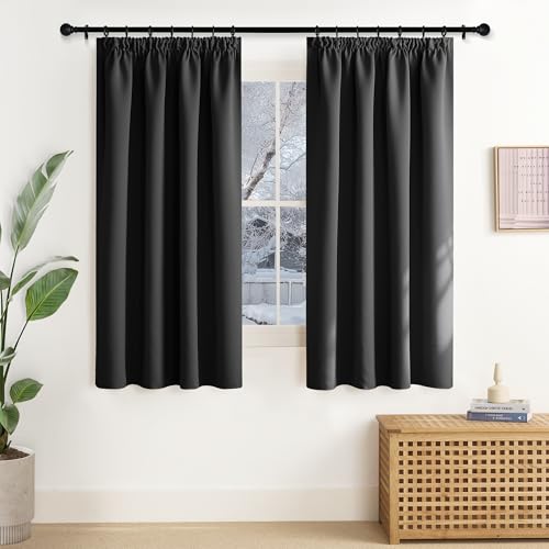 NICETOWN Rideauxs Fenetre Thermique Occultant Court, Petit Draperies Galon Fronceur Lumineux Bloquer Decoration pour Cuisine Chambre, Largeur 140 x Hauteur 137 cm, Noir, 2 Pièces
