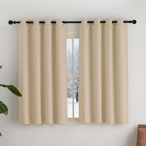 NICETOWN Rideaux et Draperies Intérieurs Occultant Thermique Court Petit Panneaux à Oeillets Decoration Chambre Maison Cuisine, L140xH145cm, Beige Foncé, 2 Pièces