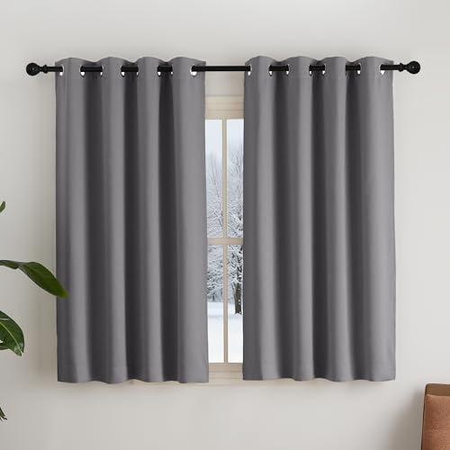 NICETOWN Rideaux et Draperies Occultant Thermique Court Petit Panneaux à Oeillets Decoration Chambre Maison Cuisine Interieurs, L107xH120cm, Gris Foncé, 2 Pièces