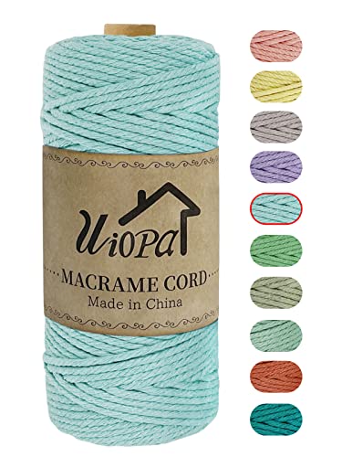Uiopa Corde Macramé 3mm x 100m, Fil Coton Macramé Coton Ficelle Corde, Cordelette pour Suspension Murale de Bricolage, Tapisserie de Plante, Decoration Boheme Chic (Bleu Clair)