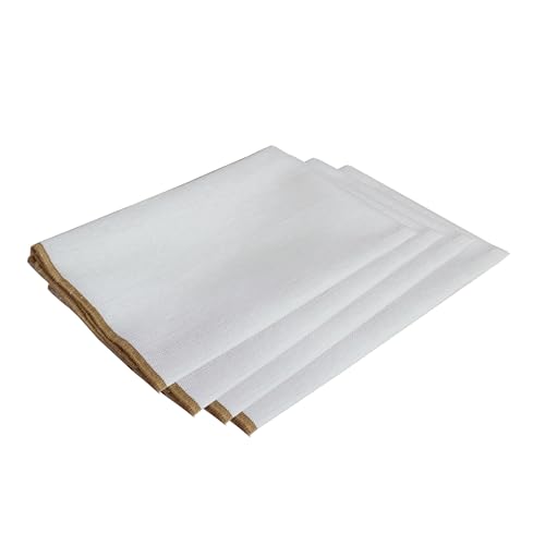 Lot de 4 Serviettes en Tissus Blanches, 40x40cm, Aspect Lin, en Coton recyclé 180gr/m², Finition Design Bourdon Naturel Beige, Collection de Linge de Table Lina Tendance bohème Chic, Enjoy Home