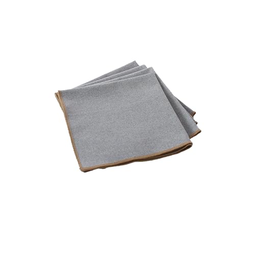 Lot de 4 Serviettes en Tissus Gris, 40x40cm, Aspect Lin, en Coton recyclé 180gr/m², Finition Design Bourdon Naturel Beige, Collection de Linge de Table Lina Tendance bohème Chic, Enjoy Home