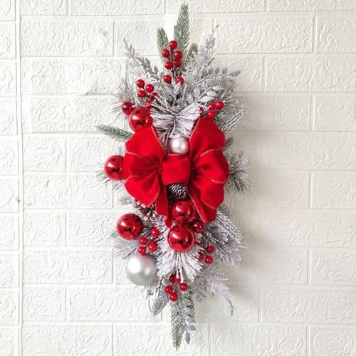 Couronne de Noël festive pour escalier - LED - Décoration d'escalier - Baies artificielles - Décoration à suspendre - 45 x 20 cm - Rouge