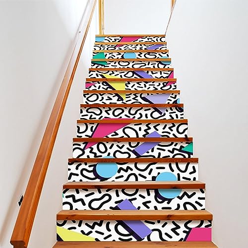 COALHO Lot de 2 autocollants pour escalier des années 80 et 90 - Décoration d'escalier - Style vintage - Style géométrique des années 80 et 90 - 100 cm x 18 cm