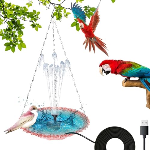 Bain d'oiseaux, mangeoire étanche à suspendre pour colibri, alimentation rechargeable par USB, avec pompe à fontaine, décoration de jardin et de terrasse pour oiseaux sauvages, 23 x 23 x 45