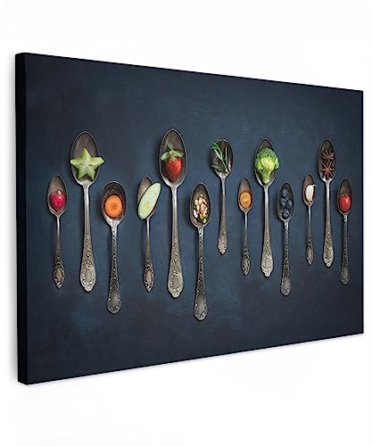 MuchoWow© Impression sur Toile Photo Peinture 120x80 cm Tableau Decoration Murale Chambre Salon Maison Deco Cuisine Cuisine - Épices - Cuillère - Argent - Industriel