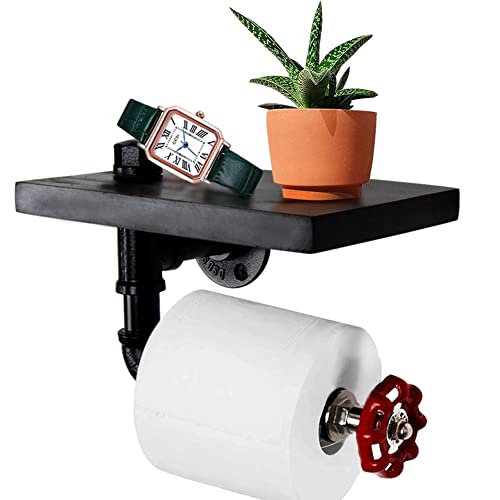 Porte-papier toilette Étagère murale décorative - Style industriel - Tuyau en acier - Avec étagère en bois pour décoration de salle de bain