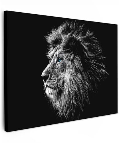 MuchoWow© Impression sur Toile Decoration Murale Peinture 80x120 cm Tableaux Decoratifs Muraux Décoration Chambre Lion - Noir et blanc - Animaux - Industriel