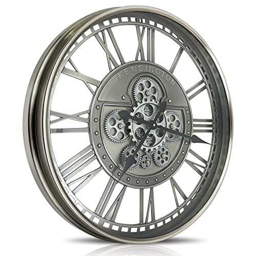 DORBOKER Grande Horloge Murale Moderne en métal à Engrenages Mobiles pour décoration de Salon Style Industriel, Steampunk, Vintage, Rustique pour la Maison, la Ferme ou Le Bureau 68,5 cm Gris métal