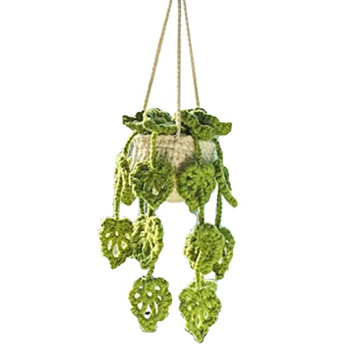 Surakey Pendentif Suspendu Plante Tricotée, Pendentif pour Rétroviseur de Voiture, Décoration Voiture Intérieur, Tricot de Laine Plante Panier Suspendu Pendentif Décor pour Voiture, Bureau, Jardin