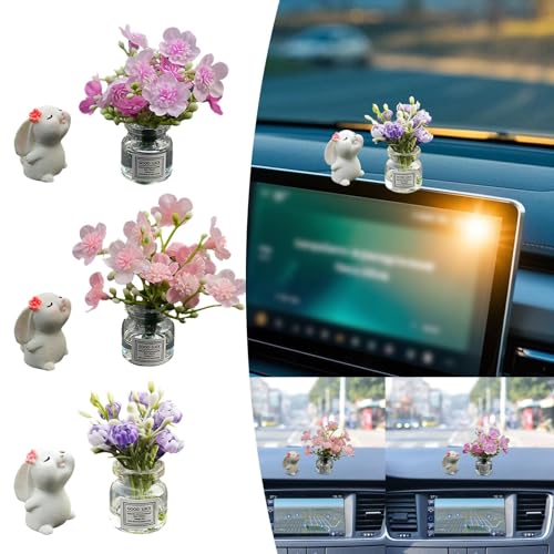 YUEXNKO Car Decoration Interior, Accessoires de Décoration Voiture Intérieur, Decoration Voiture Interieur Figurine, avec Vase et Lapin, pour Rétroviseurs, Tableaux de Bord et Grilles D'aération (B)