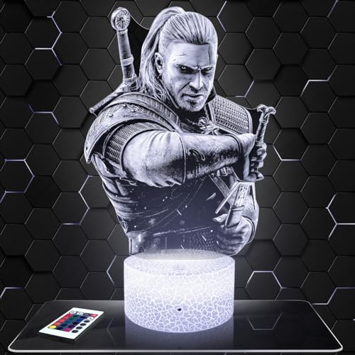 Lampephoto.fr - Lampe 3D Witcher Geralt, Décoration Chambre Garçon Fille, Gaming, Gamer, Jeux Video, Idée Cadeau Witcher Geralt, Décoration Lampe LED, Deco Bureau, Idée Cadeau Ado Original, TOP