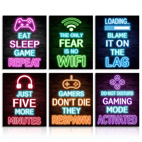 Dazzlewall 6Pcs Affiches d'art mural de jeux vidéo, Décoration néon pour chambre d'adolescent 8x10 pouces sans cadre