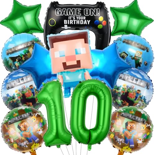 Decoration Anniversaire 10 ans, 13 Pièces Kit de Anniversaire Décoration de Fête, Jeux Vidéo Ballons de Fête d'Anniversaire pour Garçons Filles Adultes