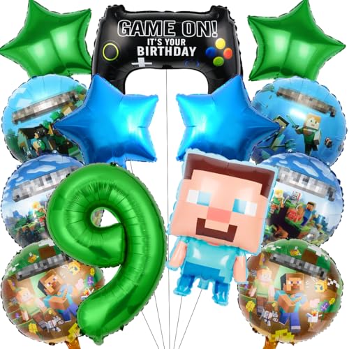 Decoration Anniversaire 9 ans, 13 Pièces Kit de Anniversaire Décoration de Fête, Jeux Vidéo Ballons de Fête d'Anniversaire pour Garçons Filles Adultes