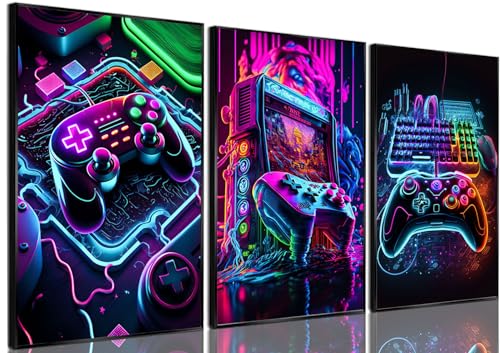 BGFCE Lot de 3 affiches murales pour décoration de salle de jeux vidéo - Décoration murale à thème accessoires de joueur - Impression sur toile pour console de jeu d'enfants et adolescents -