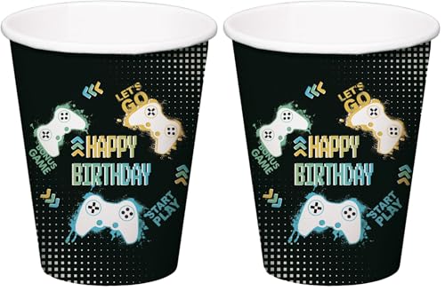 Folat 24965 Vidéo Fournitures Gobelets-Level Up-250 ml-8 pièces-Décoration Vaisselle de Fête d'anniversaire Amateurs de Jeux, Noir (Lot de 2)