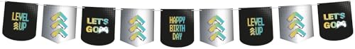 Folat 24968 Jeu Vidéo Fournitures de Fête Ensemble de Fanion Lettre - "Happy Birthday" - Level Up - 1,5 mètre - Décoration de Fête d'anniversaire Amateurs de Jeux