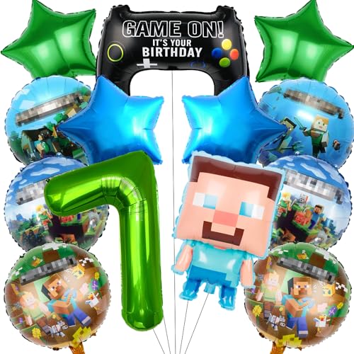 Decoration Anniversaire 7 ans, 13 Pièces Kit de Anniversaire Décoration de Fête, Jeux Vidéo Ballons de Fête d'Anniversaire pour Garçons Filles Adultes