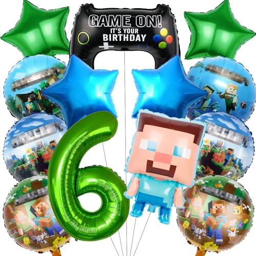 Decoration Anniversaire 6 ans, 13 Pièces Kit de Anniversaire Décoration de Fête, Jeux Vidéo Ballons de Fête d'Anniversaire pour Garçons Filles Adultes