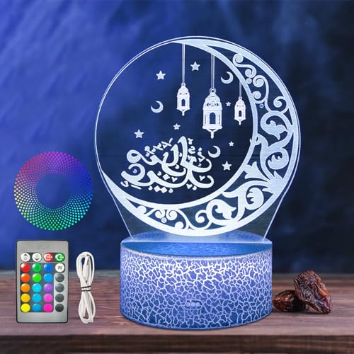 Decoration Ramadan Lumineuse, Lampe Lune 3D, Ramadan Eid Mubarak Decoration, Veilleuse LED avec Télécommande, Décoration Ramadan Lumineux, Decorative Ramadan Chambre Islam Musulman Table (B Lanterne)