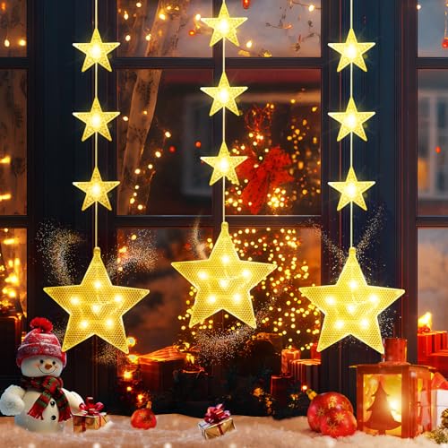 Vautvis Decoration Noel Fenetre Lumineuse, 3 Pièces Decoration Noel Fenetre Lumineux, Fenêtre Décorative De Noël Avec étoile Guirlande Fenetre Noël Guirlande Lumineuse
