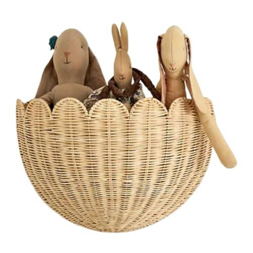 Panier mural festonné en osier festonné à suspendre pour mur, décoration d'intérieur pour salle de bain, chambre à coucher, salon (1 pièce)