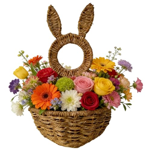 Generisch Lapin de printemps - Panier mural en osier - Décoration - Panier à fleurs tressé à la main - Pour salon, balcon, porte d'entrée, maison de campagne