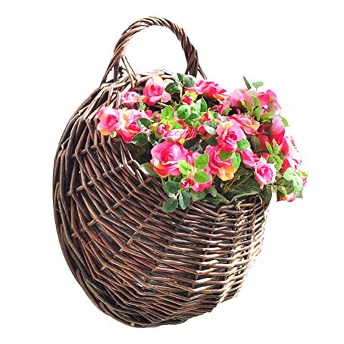 Uanqfegy Panier Suspendu tissé, Pot de jardinière de Vigne en rotin et Osier, conteneur Stockage Fleurs Mural pour décoration Jardin et Mariage, Marron foncé