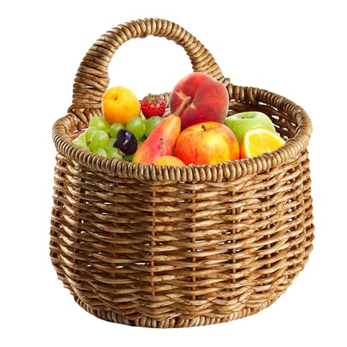 VICASKY Panier Mural En Plastique Tissé : Panier Mural Rustique En Osier Pour Ail Pommes De Terre Oignons Fruits Et Fleurs Organisateur De Cuisine Pour Légumes Décoration
