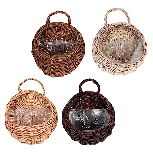 YARNOW 4pièces Pot De Fleurs Osier Fait Main Panier De Rangement Mural Suspendu Décoration pour Maison Jardin Bureau
