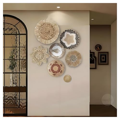 Lot de 7 Panier Mural Bohème à la Main Decoration Murale en Rotin Osier pour Chambre à Coucher Salle à Manger Bureau