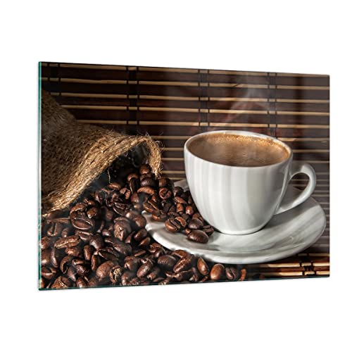 Deco Cadre Salon Arôme café grains Moderne Impression sur Verre 120x80cm Image Tableau en Verre Decoration Murale Chambre Cuisine Horizontal Art Grand XXL Tableaux Decoratifs Muraux GAA120x80-2382