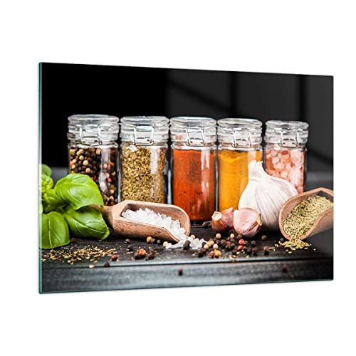 Deco Cadre Salon Épices ail bois sel Moderne Impression sur Verre 120x80cm Image Tableau en Verre Decoration Murale Chambre Cuisine Horizontal Art Grand XXL Tableaux Decoratifs Muraux GAA120x80-2896