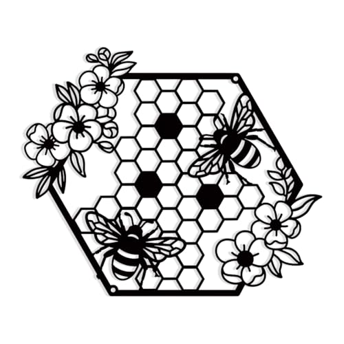 WADORN Décoration Murale en Métal, Abeilles à Miel et Ruches avec Fleurs, Décoration Artistique en Fer Forgé Noir, Décoration à Suspendre pour Intérieur et Extérieur, Jardin, Maison, Chambre à Coucher
