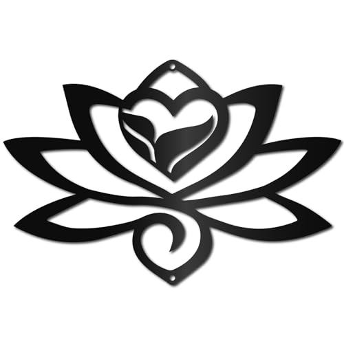 CREATCABIN Fleur de Lotus en Métal-Décoration Murale Fer Suspendre-Noir Ajouré-Silhouette de Lotus-Panneau en Fer pour Studio Yoga,Intérieur Ou Extérieur,Décoration Bureau,Cadeau-Noir 30x25cm