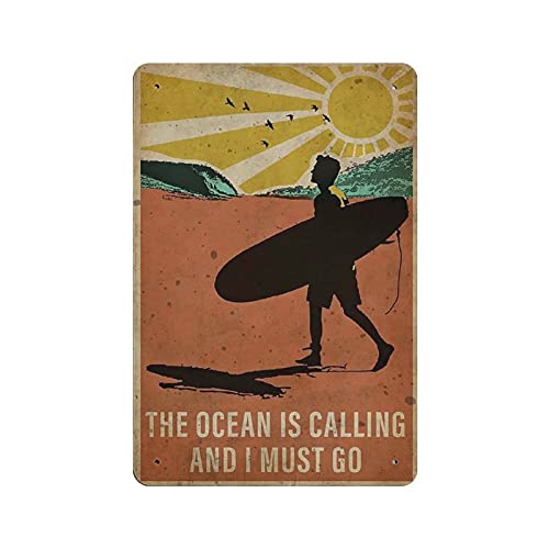Panneau en étain en métal « The Ocean Is Calling And I Must Go » - Affiche d'art vintage rétro - Peinture sur fer - Décoration murale - Cadeau artistique pour extérieur, café, bar, garage, ferme - 30,
