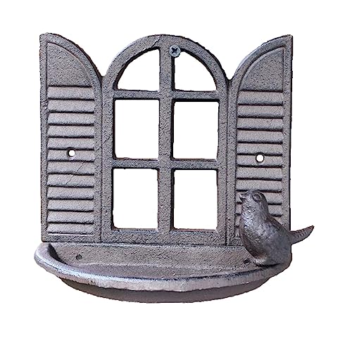 Mangeoire Oiseaux Mésanges Mur De Mangeoire À Oiseaux en Fonte avec Fenêtre Et Décoration Murale Fer Figurines d'oiseaux Solides Balcon Exterieur