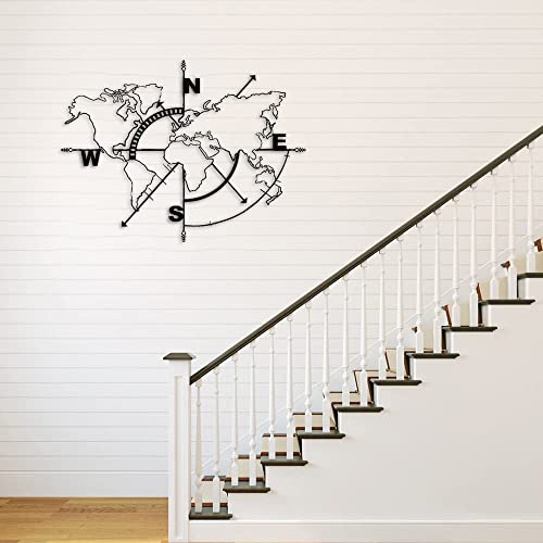 Dekadron Métal Carte du Monde – boussole décorative murale, décoration pour la maison, le bureau ou le salon (Noir, 117 x 91 cm)