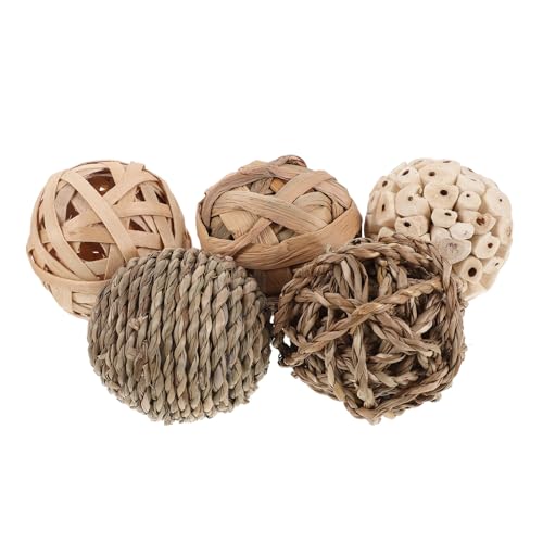 MUELODSIC Boules Décoratives en Rotin Naturel Tressé, Lot de 5 Sphères Artisanales pour Décoration de Vase, Décoration Murale en Rotin, Éléments Rustiques pour Salon et Entrée,