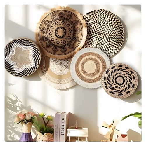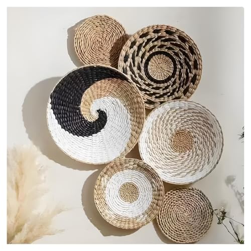 Lot De 6 Paniers Muraux Décoratifs Bohème Style Décoration Murale Rotin Paniers Muraux Boho Panier Mural Tissé À Suspendre pour Mural Art Déco Salon Ferme Nursery Chambre à Coucher